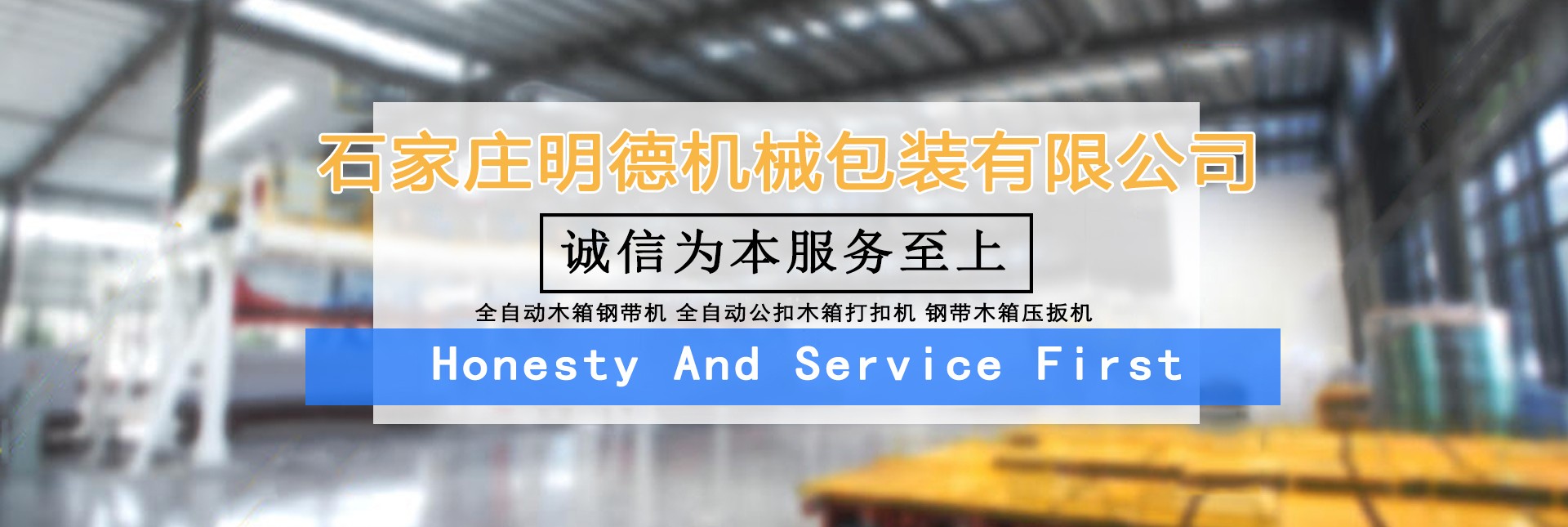 石家莊明德包裝機(jī)械有限公司是國內(nèi)專業(yè)生產(chǎn)木全自動木箱鋼帶機(jī)、半自動公母扣木箱打扣機(jī)、全自動雙排孔定長切斷機(jī)、美式托盤打釘機(jī)械、托盤刨槽機(jī)、倒角機(jī)、木包裝箱、木托盤的生產(chǎn)廠家。